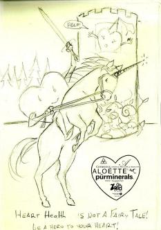 The company I work for participated in the Heart Walk this weekend, and we wore the winning shirt. I don’t remember what it looked like because the design was very dull and corporate-y. It had some logo with some lackluster phrase on the back. Joie Brown and I collaborated to design the best shirt ever, and though I think it could have been a contender for the charity’s cool shirt competition (I saw a few funny and cool ones while being a brand’s booth babe), the awesomeness was not understood in my high-strung office, so our shirt only got one vote. Marketing had all this fun wiggity-woo technology to make their shirt templates, but Joie and I had a pad of paper, a scanner and the power of imagination! I forgot only creativity within reason is acceptable here. Oops.