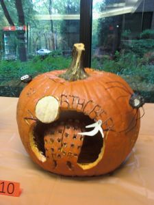 As for the pumpkin carving contest, I was sure out of the office building tenants, I would make one of the top three pumpkins. Wrong. I can totally see why the winners were winners though. Apparently, a group of excited friends with a vision make a better jack-o-lantern than one hung-over Prentice. At least I still received a five dollar Starbucks gift card for my trouble. I do love a free, soy, green tea latte!