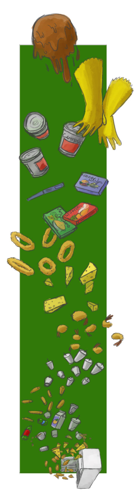 On the eleventh day of Fridgemas somebody left for me… 11 pizza slices, 10 drinks a leaking, 9 soggy fish sticks, 8 moldy milkshakes, 7 prawns a rotting, 6 cheese decaying…5 onion rings! 4 frozen dinners, 3 soup cans, 2 rubber gloves? And a ball of something sticky!