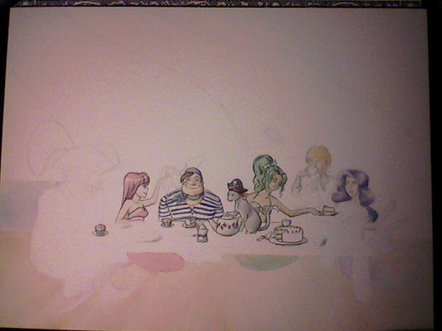Joie’s drawings and paintings are nothing short of amazing, and the fridge illustrations are definitely not the first pieces she’s done for me. You should go to her website and bask in the whimsical light of her awesomeness. Our friendship began in middle school, but our teamwork shenanigans started back in high school. We were often bored in health class. I would say “Hey, Joie! Draw [insert wild and ridiculous idea here] for me!” She always would, and our creative pairing only grew from there. We’ve done all kinds of creative stuff together, from arts and crafts to cosplay to more serious visual and literary works.