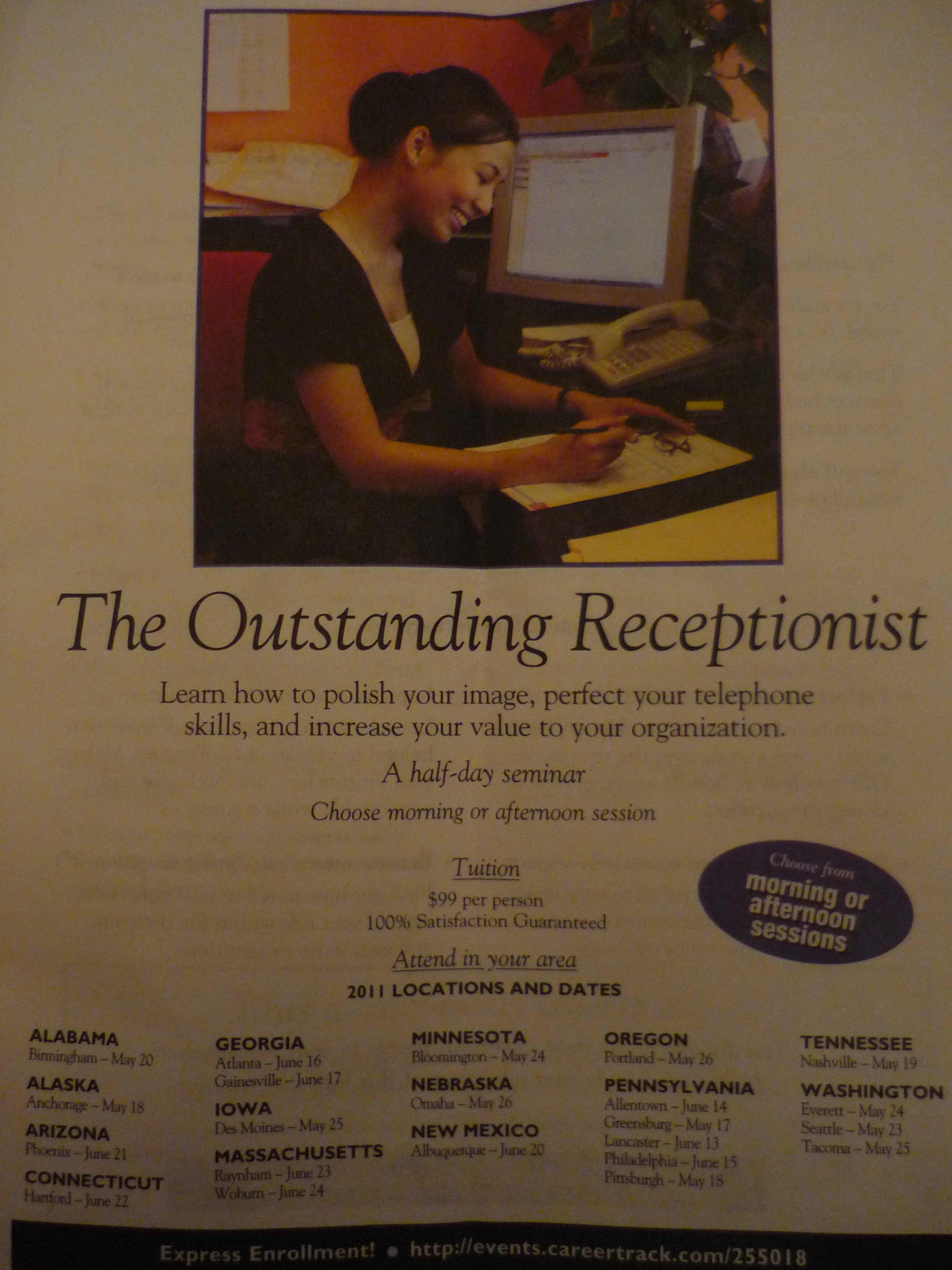 For 99 bucks, you can learn how to be the best receptionist! I never read beyond the covers because this made my brain hurt, especially after having two admin jobs under my belt. On the back cover, it claims to teach valuable lessons like how to answer the phone, be pleasant and blah blah blah. Really? Who in their right mind would attend this class? You could learn a new, more useful skill for that much, or you could buy 200 Cadbury Eggs. Either would be a better use of time and money.