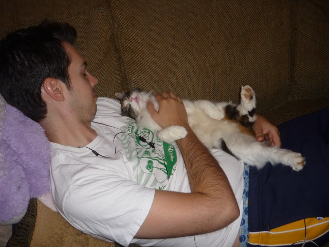 Our other cat daughter, Tybee, has been acting different lately, not much like herself. She is normally quiet but now is more vocal. She was not big into snuggles but now sleeps and cuddles with us. This sparked a slightly morbid theory/joke. I hypothesize that Savannah passed away, and her spirit possessed part of Tybee. They share the same, adorable body now. This would explain the Savannah-ish behavior and Tybee’s newest napping spots, which were Savannah’s