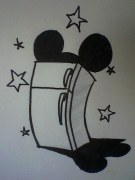 Poor Joie. This quickie sketch she did for me in ten seconds is the top fridge illustration seen.