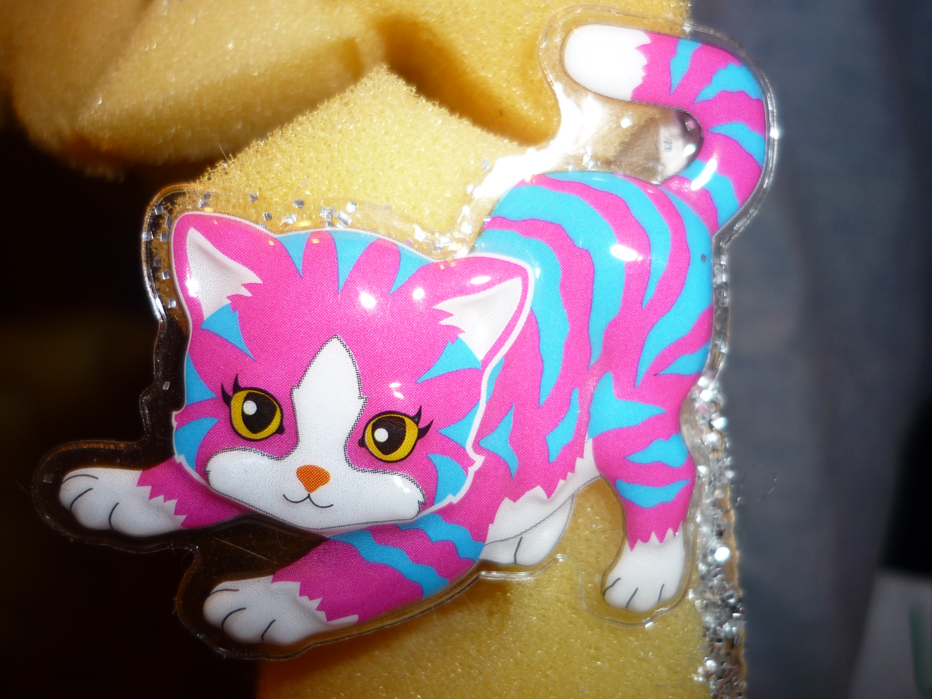 I decided to make a few modifications on this though. Instead of a plastic bin, I used a cardboard box. I thought it would be nice to recycle, and I feel the cardboard would absorb sound better. I didn’t want any echo from plastic. Another vast improvement I made was…ADDING KITTIES, RHINESTONES and GLITTER!