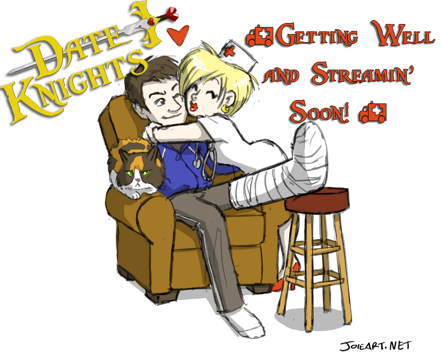 This first week has been physically exhausting and emotionally draining for Nick and me. Nick’s been adjusting to his immobile, more vulnerable lifestyle. He is adapting and struggling simultaneously. It’s hard to go from being young and healthy to immobile and helpless in seconds. Poor thing. Also, I have always been prone to depression, and if I said all the stress from Nick’s pain, my caretaker responsibilities, bits of drama, physical fatigue, and lack of sleep has not triggered some mind-blowing bleakness, I’d be lying through my teeth. Things are starting to look-up a little, and I know with that will come higher, more ambitious spirits, and hopefully after that, the power to bring back Date Knights!